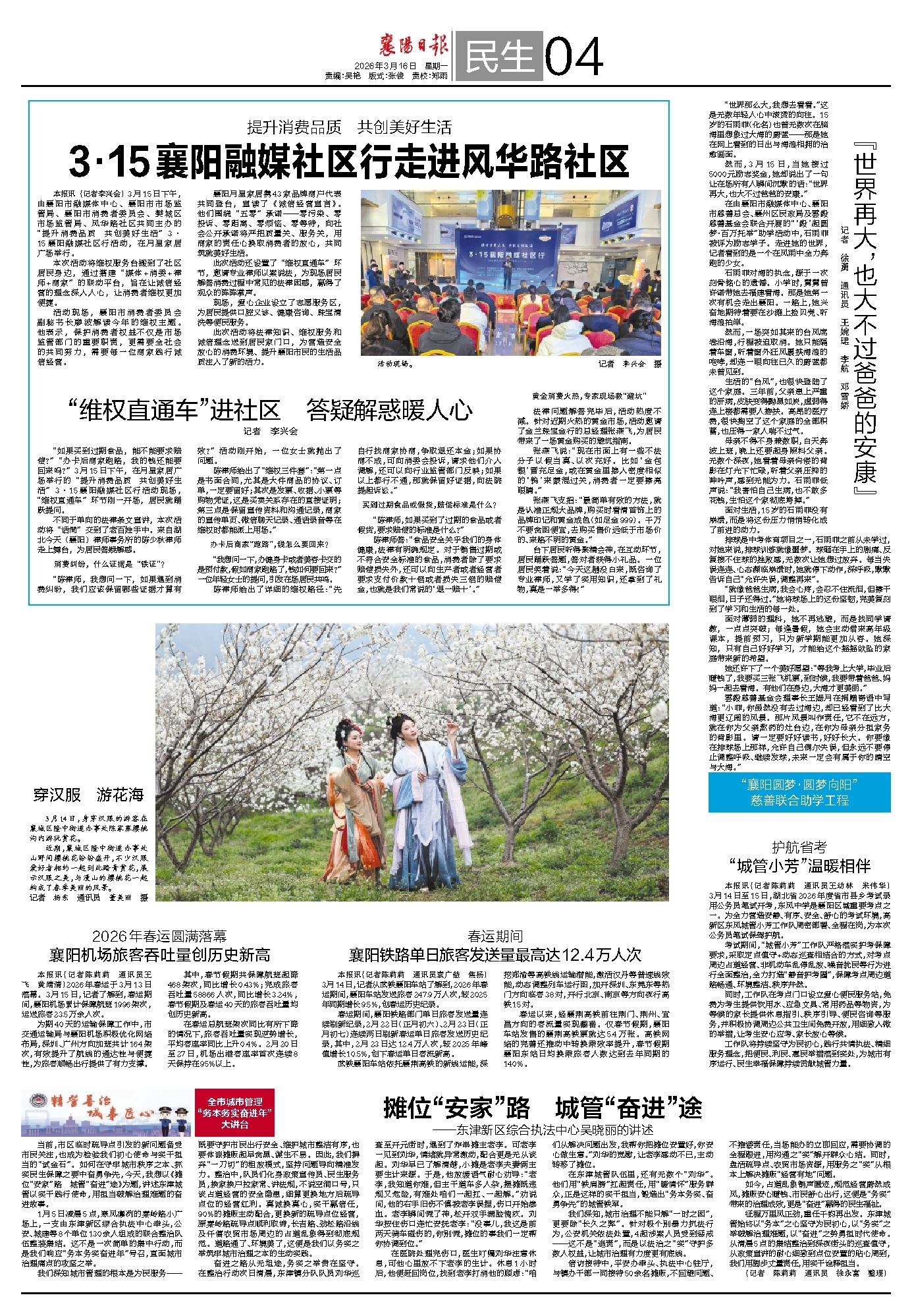 本报讯(记者陈莉莉 通讯员王飞 黄靖清)2026年春运于3月13日落幕。3月15日,记者了解到,春运期间,襄阳机场累计保障航班1996架次,运送旅客23.5万余人次。