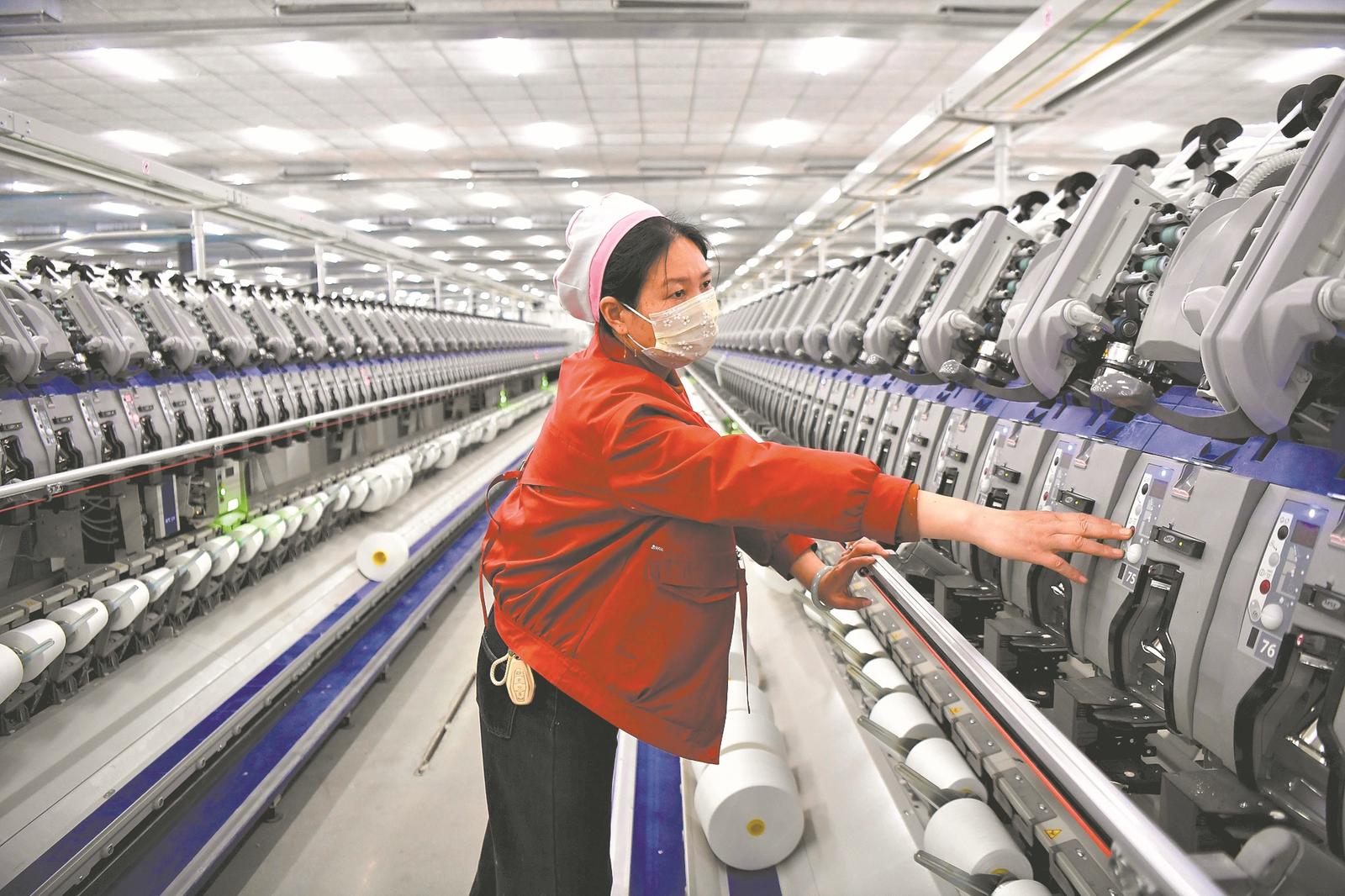 近日,在位于襄州区的湖北金恒昌纺织有限公司四期项目生产车间,工作人员正操作新引进的智能涡流纺纱机。据悉,该机器集成自动接头、落纱、放管等全流程自动化功能,生产效率大幅提升。 记者 乔森垚 刘自航 摄