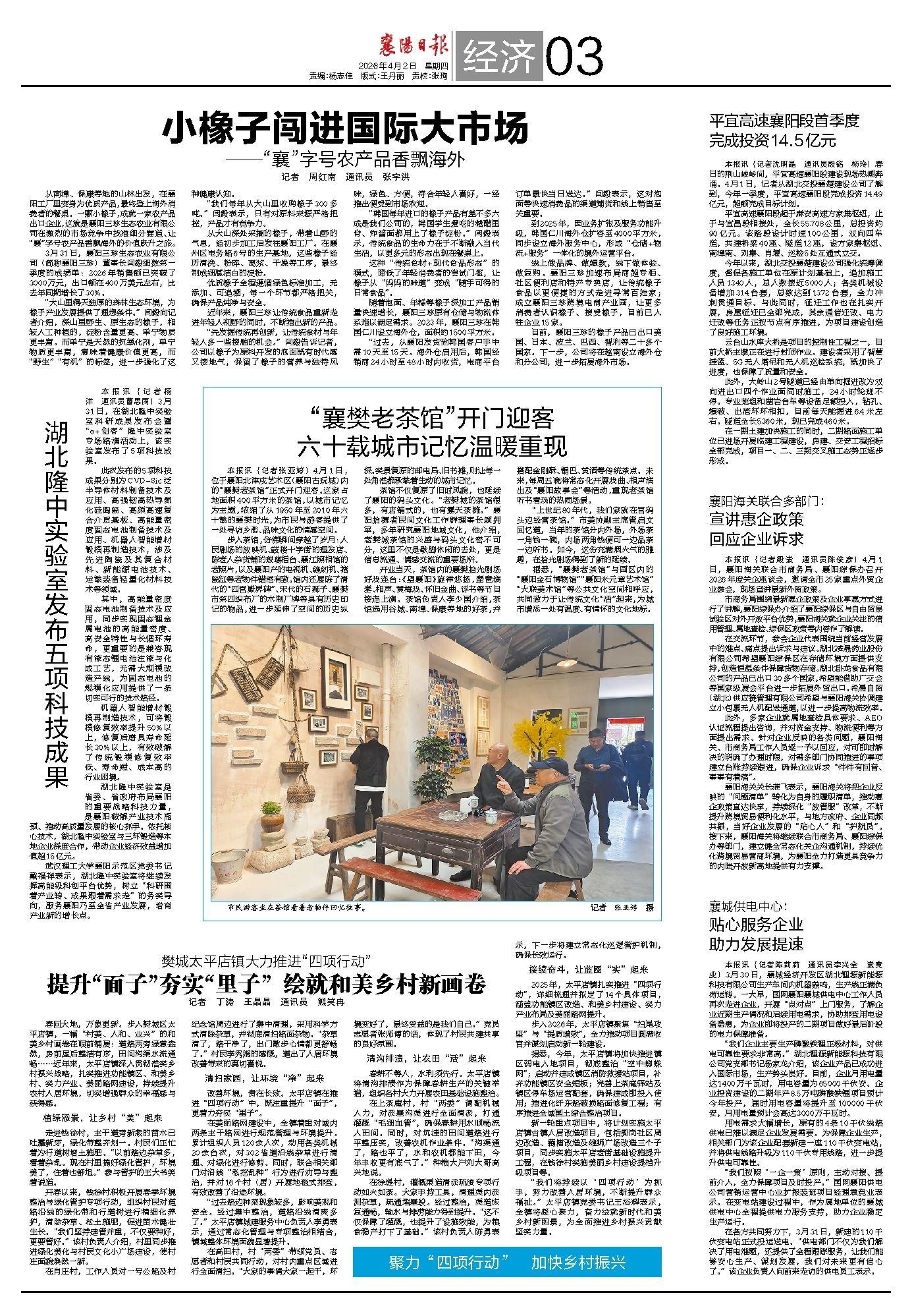 本报讯(记者殷素 通讯员陈俊彦)4月1日,襄阳海关联合市商务局、襄阳综保办召开2026年度关企座谈会,邀请全市25家重点外贸企业参会,现场宣讲最新外贸政策。