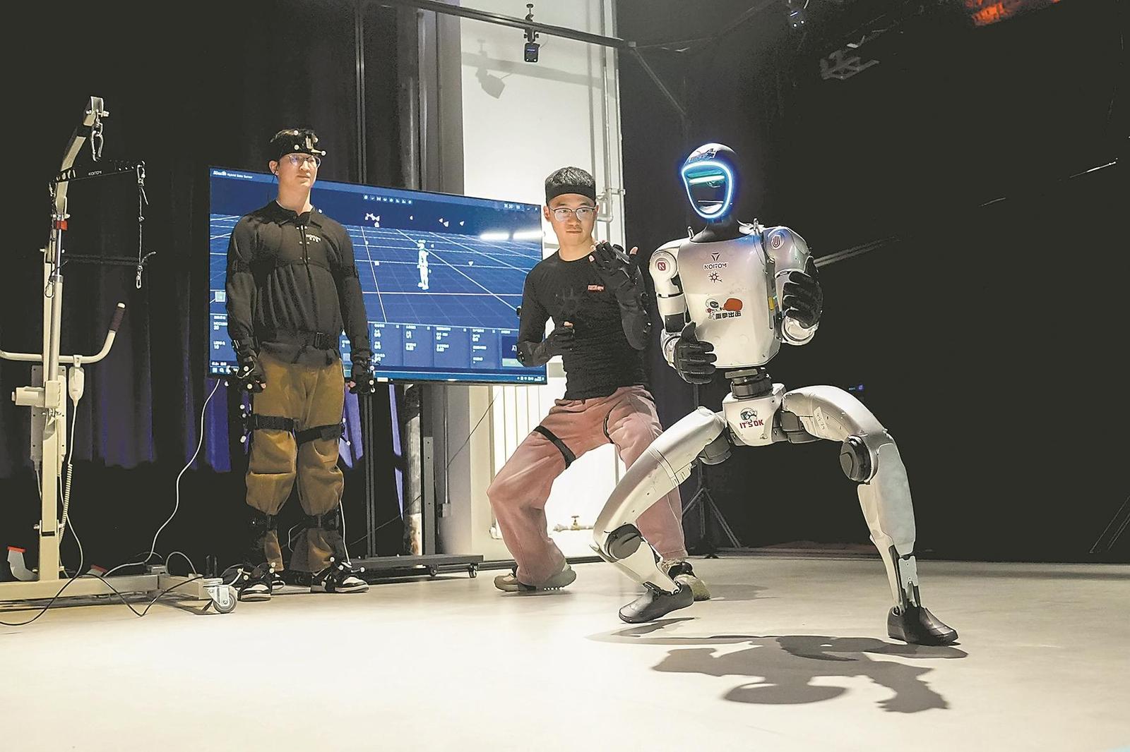 2026年3月26日,在北京国际科幻与未来产业博览会上,诺亦腾机器人的工作人员演示通过动作捕捉技术控制的协作机器人。 新华社 发