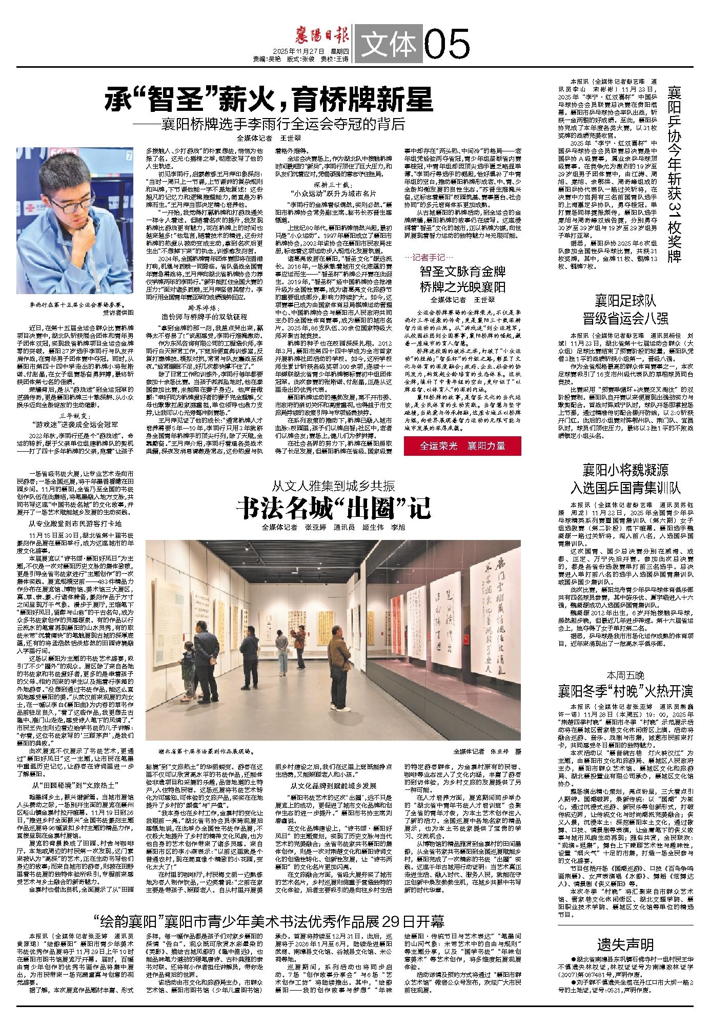 智圣文脉育金牌 桥牌之光映襄阳