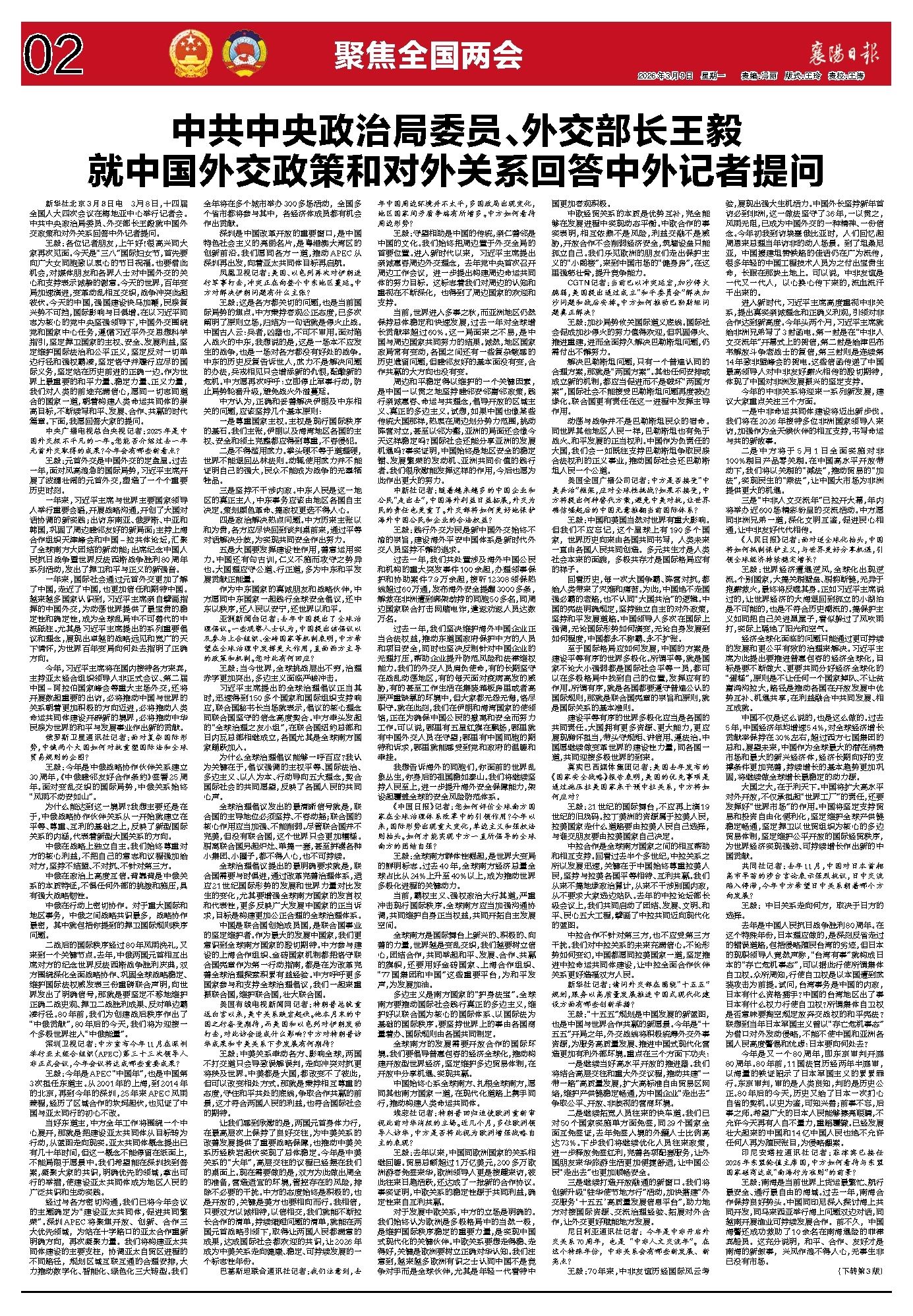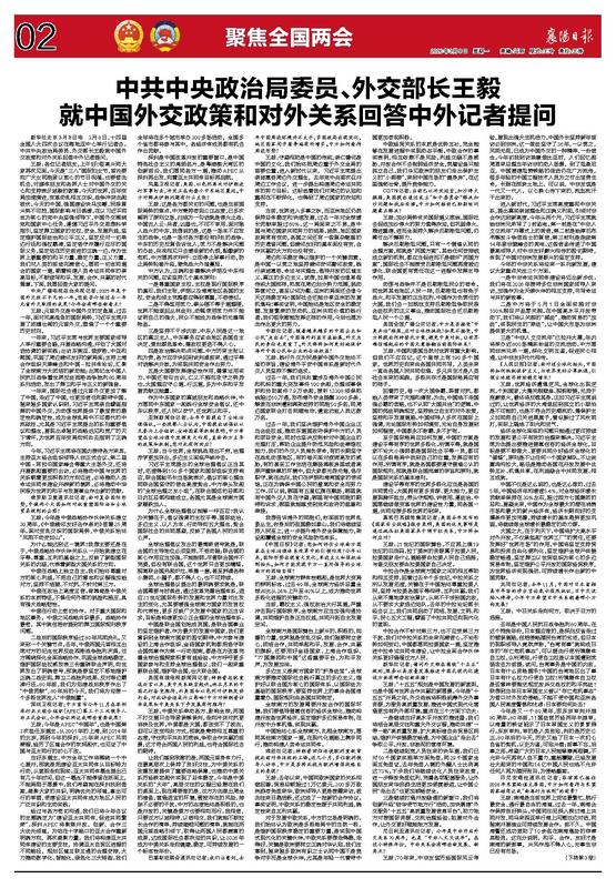 中共中央政治局委员、外交部长王毅就中国外交政策和对外关系回答中外记者提问