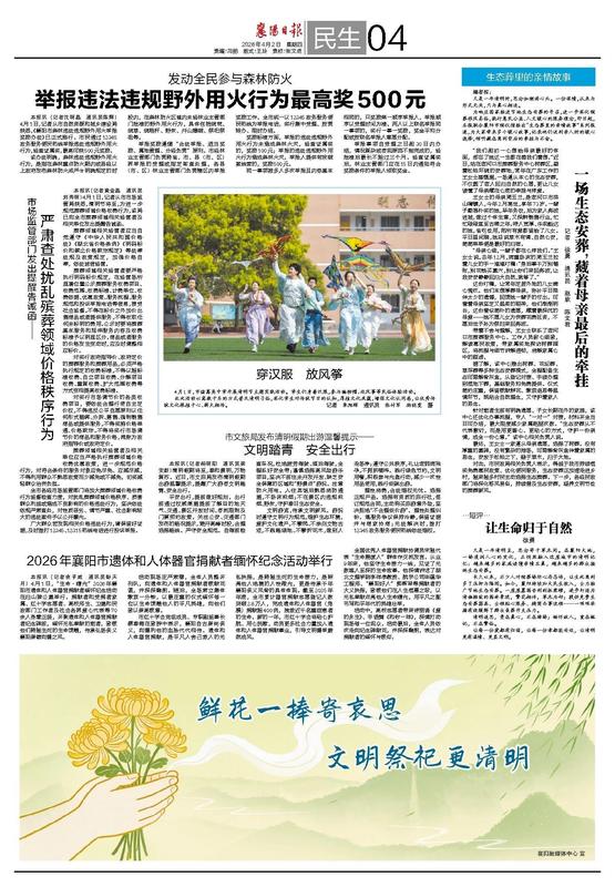 2026年襄阳市遗体和人体器官捐献者缅怀纪念活动举行
