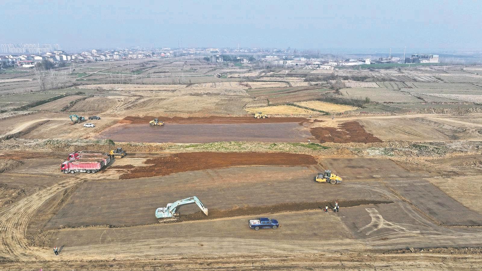 新建铁路襄阳小河港区疏港铁路专用线(Ⅱ期)项目装卸场建设现场。通讯员 李勤 摄