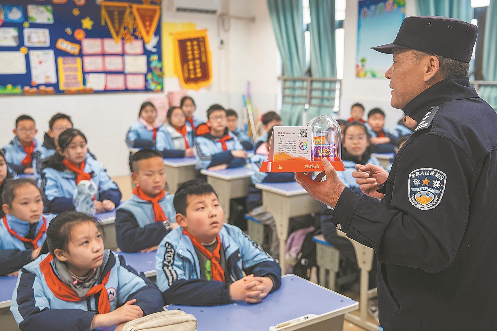 1月5日,市公安局襄城区分局檀溪派出所民警走进恒大名都小学开展禁毒宣传活动。民警结合真实案例讲解毒品的危害,展示传统及新型毒品仿真模型,并设置互动问答环节,传授防毒技巧,切实增强学生的识毒、防毒、拒毒意识。
