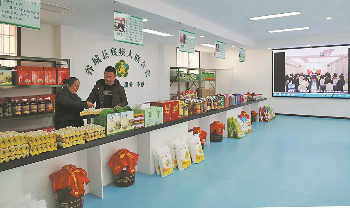 “我们在一线走访时发现,不少残疾人喂养的土鸡、制作的糕点等,品质都非常好,但缺乏一个集中展示销售的窗口,导致货物难以大量售出,增收有些吃力。”谷城县残联负责人陈琳迅速安排工作人员对接自主创业的残疾人,详细摸清他们的经营情况,尤其是销售方面的需求。在此基础上,创新搭建了这个展销馆,将残疾人制作生产的农副产品统一收纳并入驻展销馆,还免费为他们提供样品展示、货物存储、销售推荐、品牌宣传、快递物流等一系列服务。