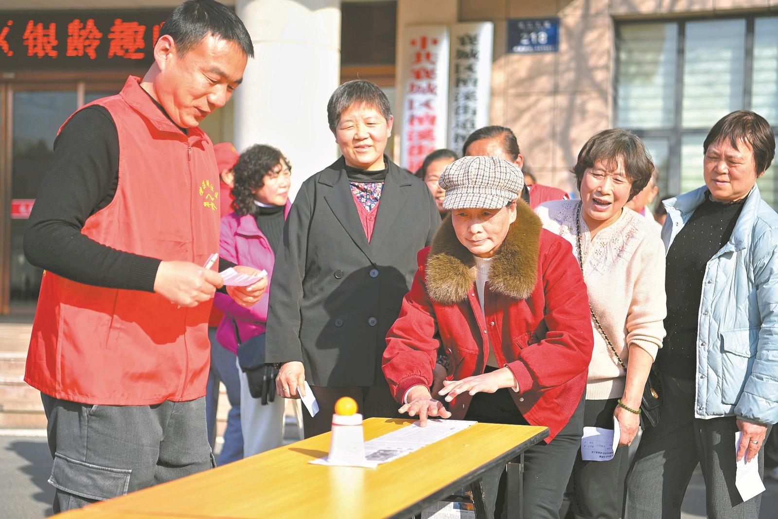 1月15日,襄城区檀溪湖社区内一片欢声笑语,居民们正兴致勃勃地参与着社区举办的趣味运动会。