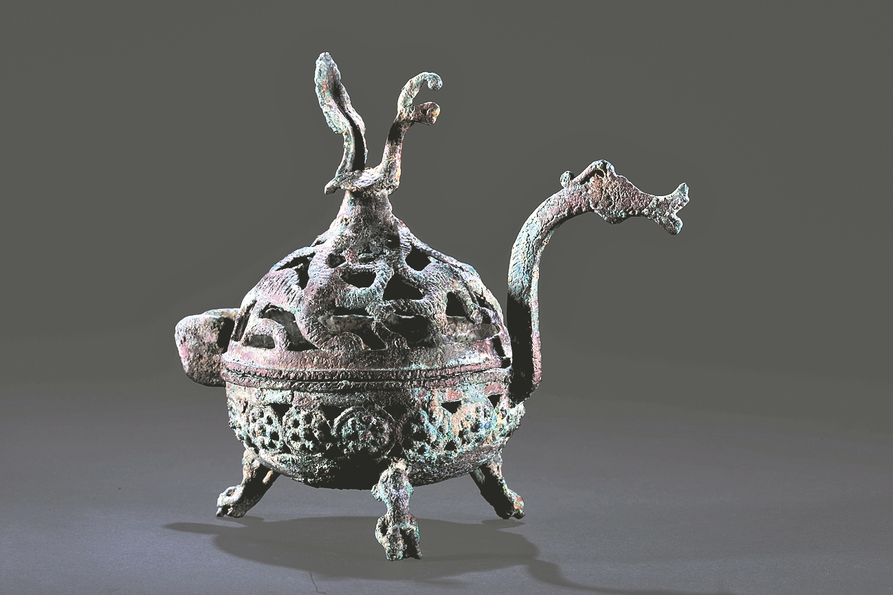 三国早期透雕花纹“四神”铜熏炉。