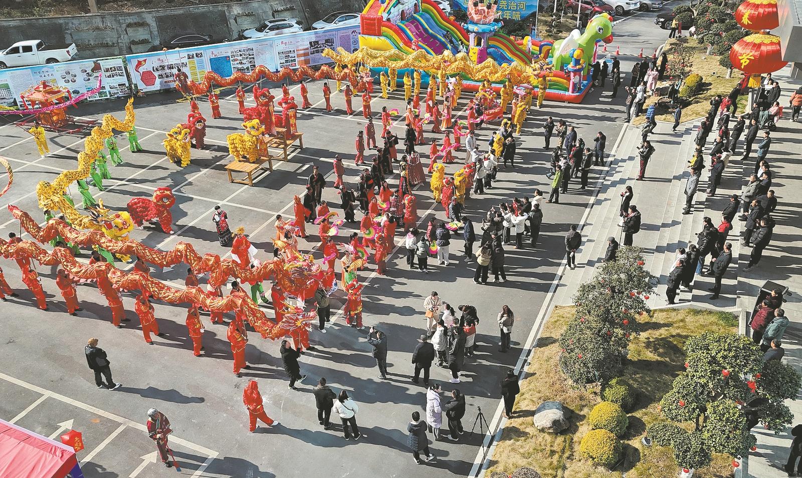 2月19日,市民和游客在保康县马桥镇尧治河村观看民俗表演。特约通讯员 陈泉霖 通讯员 王晓丹 向鑫 摄