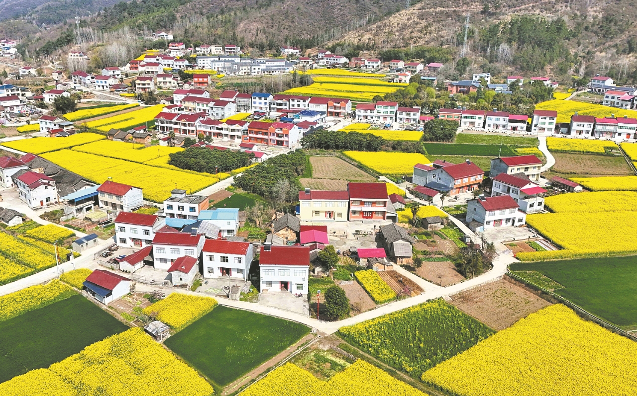 3月22日,保康县马良镇宋家湾村油菜花竞相绽放,金灿灿的花海与蓝天白云、村庄民居交相辉映,构成一幅生机勃勃的春日画卷,吸引众多游客前来踏青赏花,成为当地乡村旅游的新亮点。