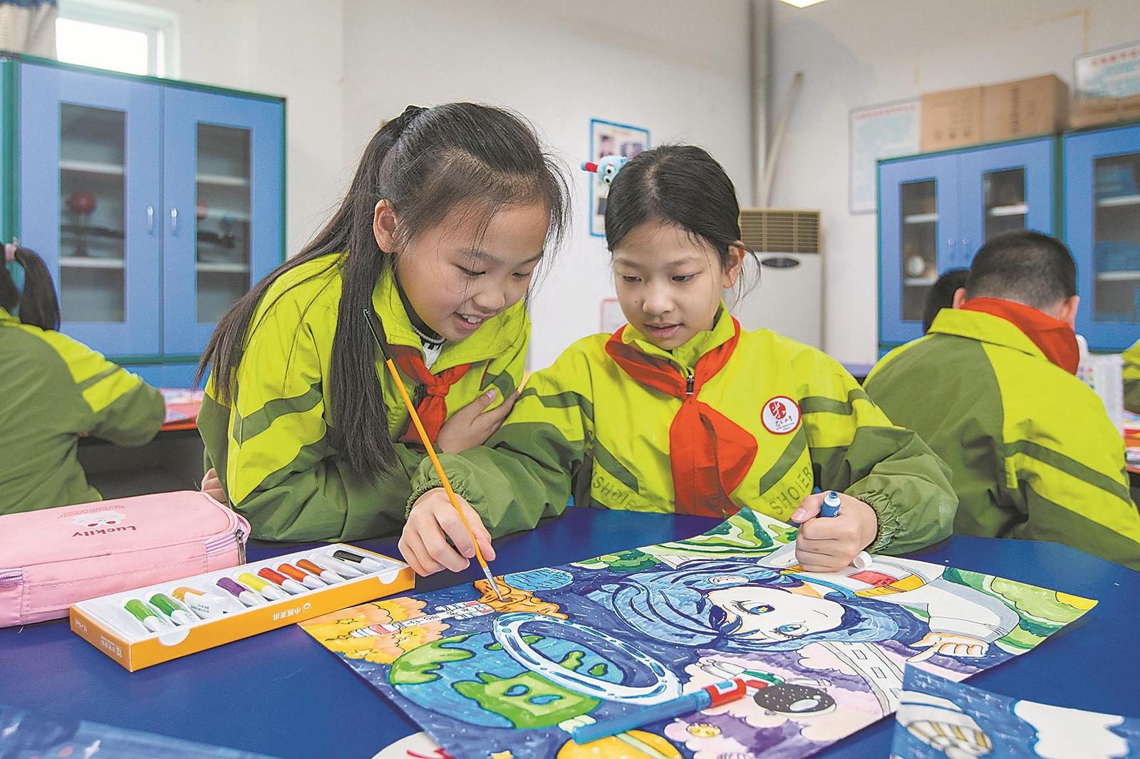 4月9日,在市米公小学,学生们认真绘制航天主题绘画。在中国航天日来临之际,该校开展航天主题绘画创作活动,旨在普及航天知识,弘扬载人航天精神。