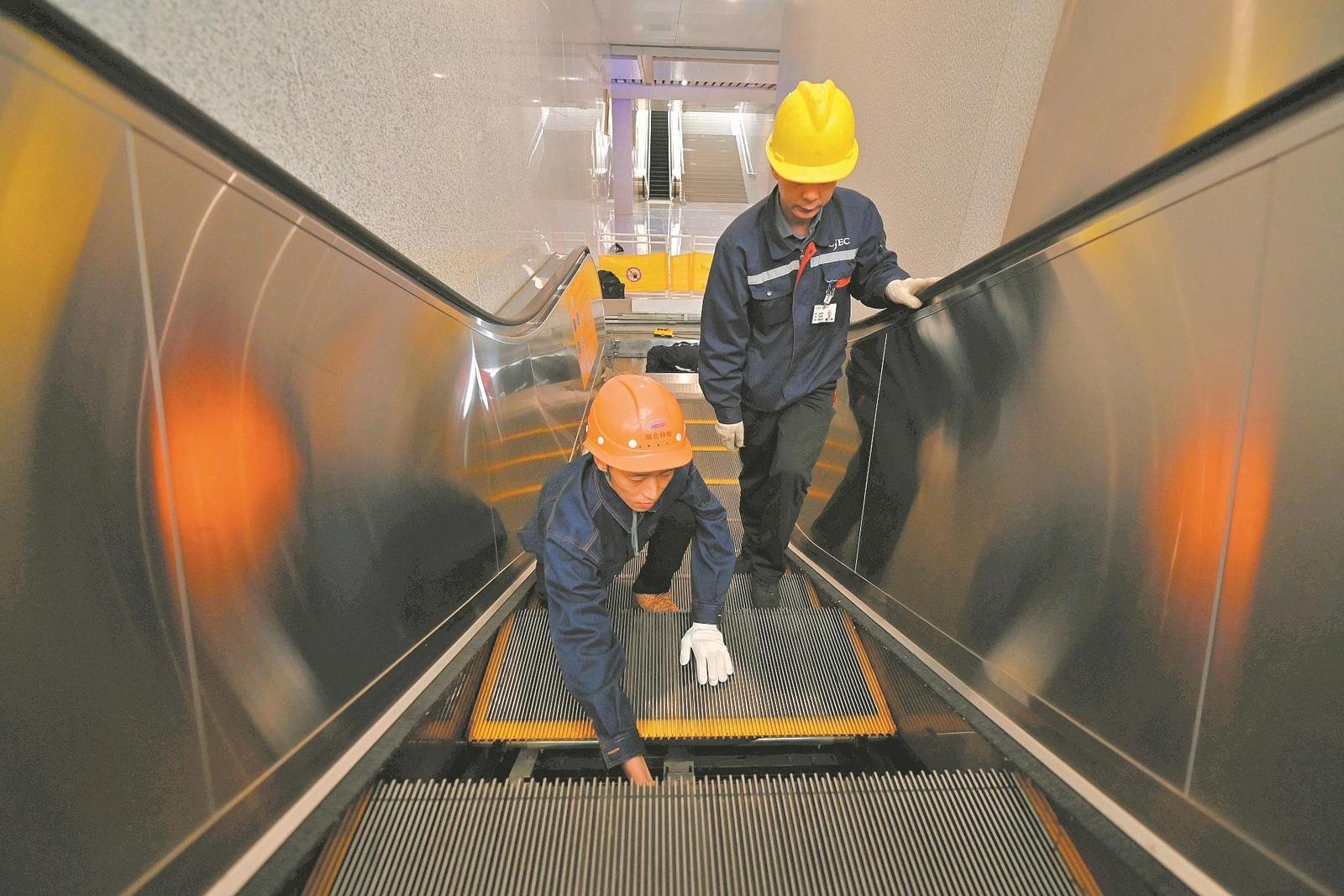 4月14日,湖北特检院襄阳分院红色特检小分队在南漳高铁站对电梯开展安全检测。