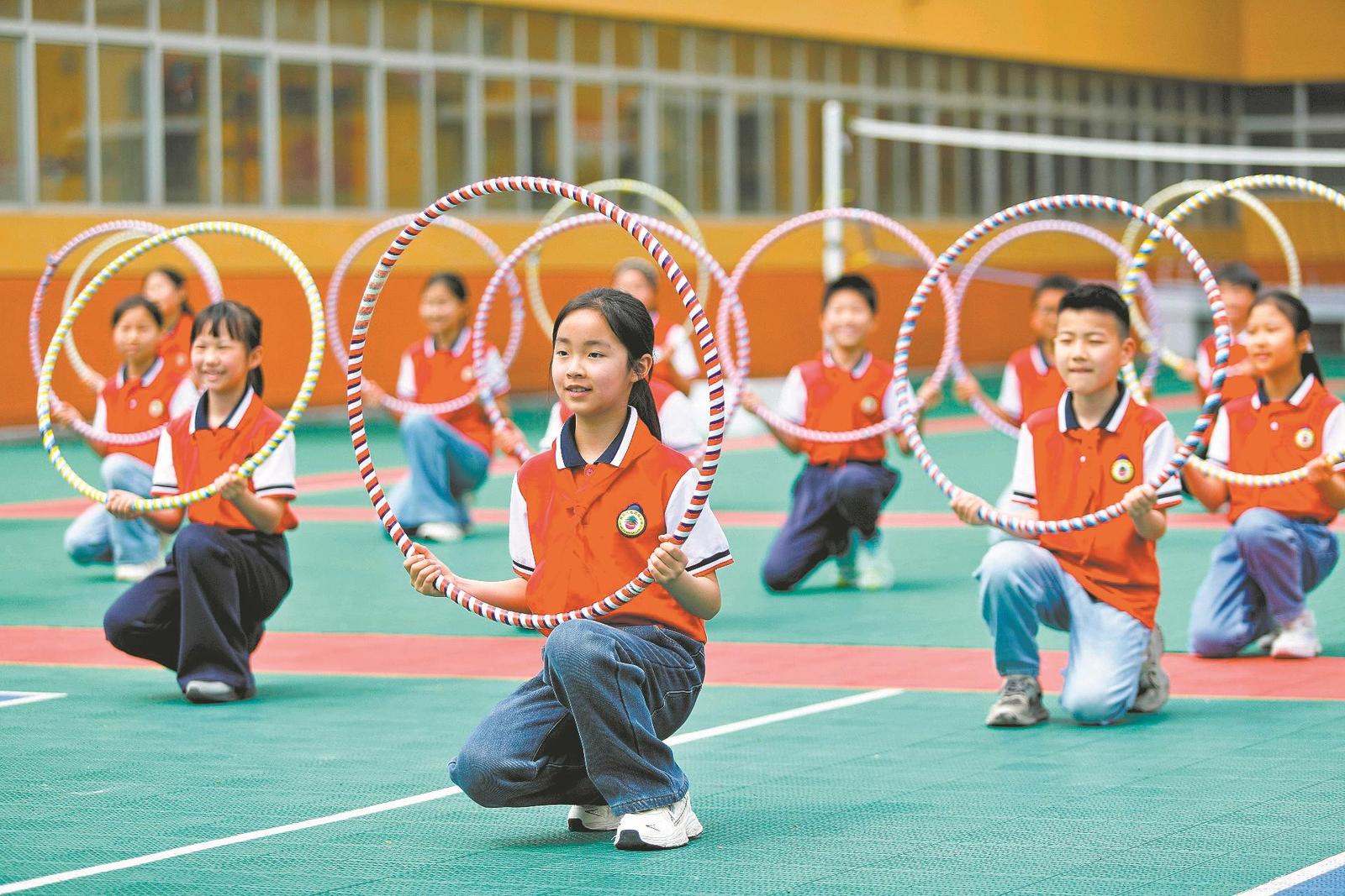 4月15日,春园路小学阳光大课间时段,孩子们欢快地转呼啦圈。该校丰富课间体育活动形式,让学生们在轻松愉悦的运动中舒展身心、增强体质,校园处处洋溢着蓬勃朝气。