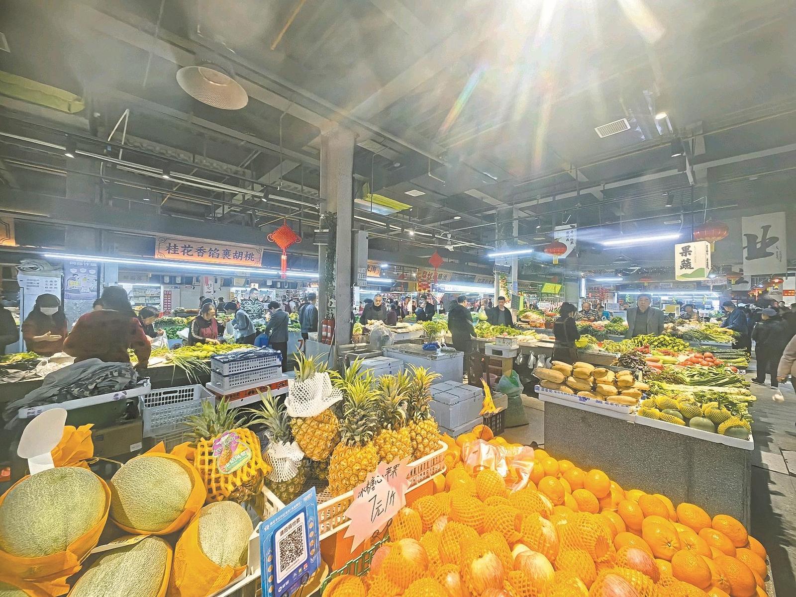 立业市集内琳琅满目的水果蔬菜,供群众采购。记者 朱科 摄
